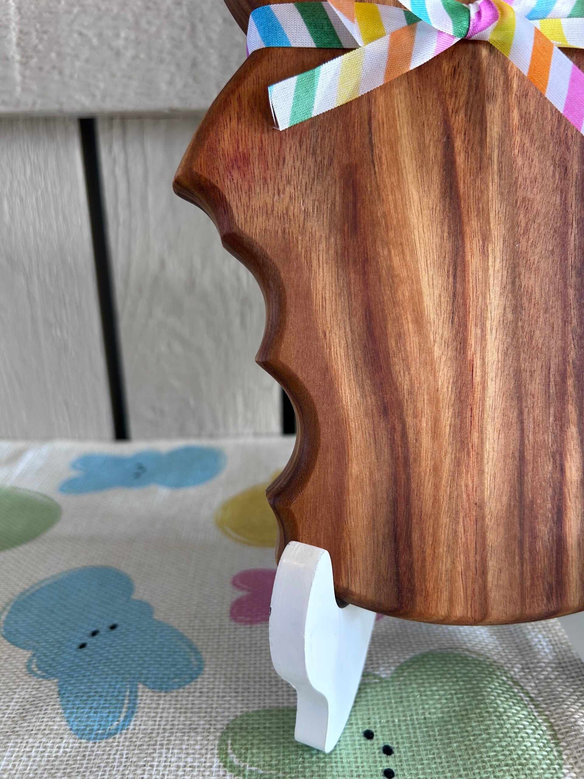 Measuring 14” x 7”, it’s the perfect size for individual grazing spreads, Easter brunch displays, dessert boards, or seasonal kitchen décor. Finished smooth to highlight the wood’s warmth and character, this board is both functional and festive — a charming addition to any spring gathering or gift basket.